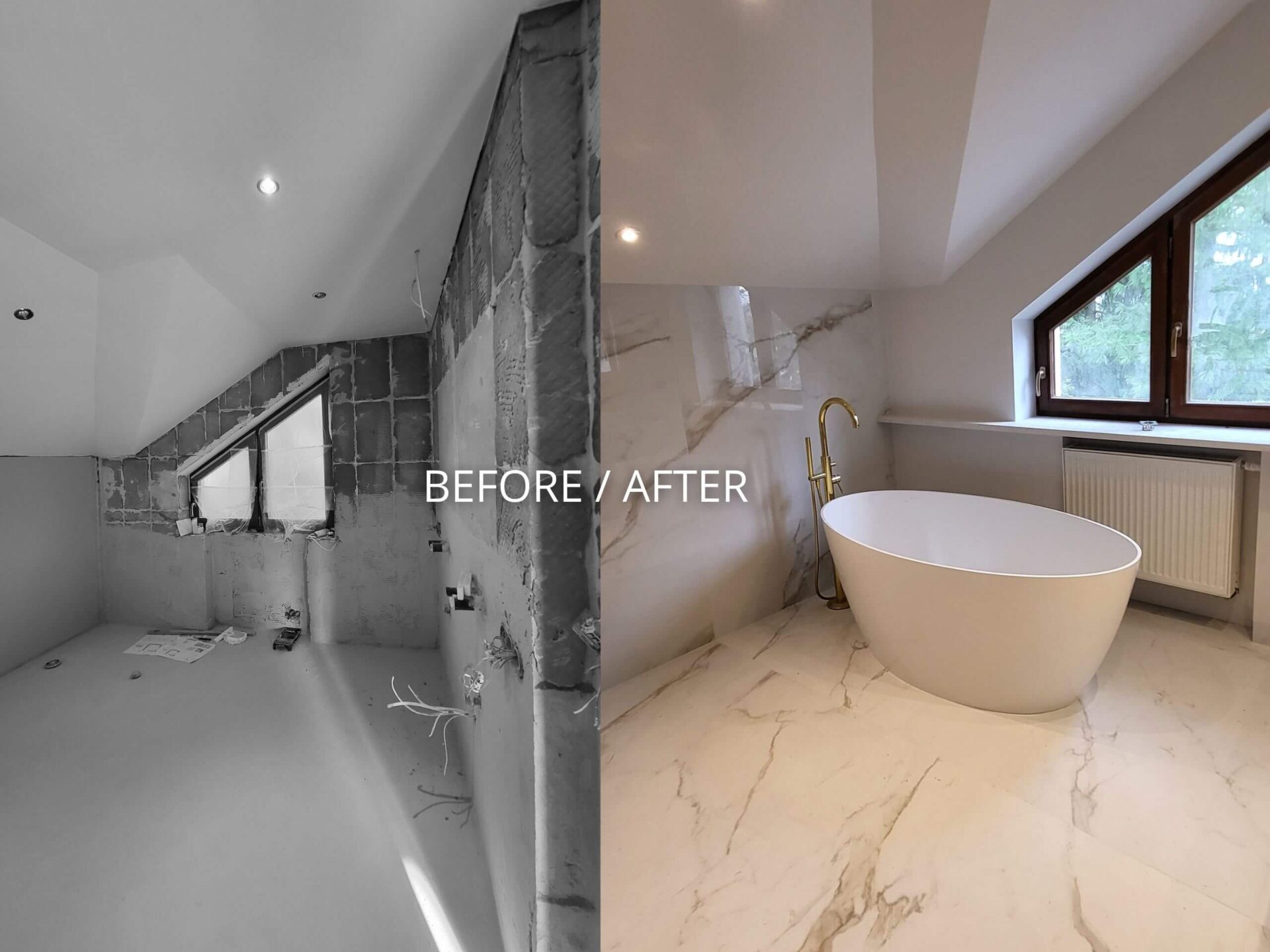 Łazienka ze skosem i wanną – luksus w detalach