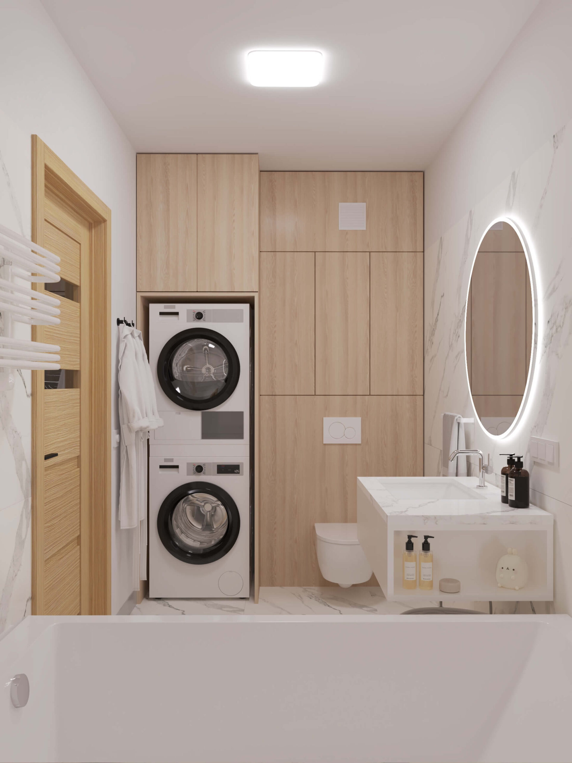 Nowoczesna łazienka 5m2 z wanną i pralką