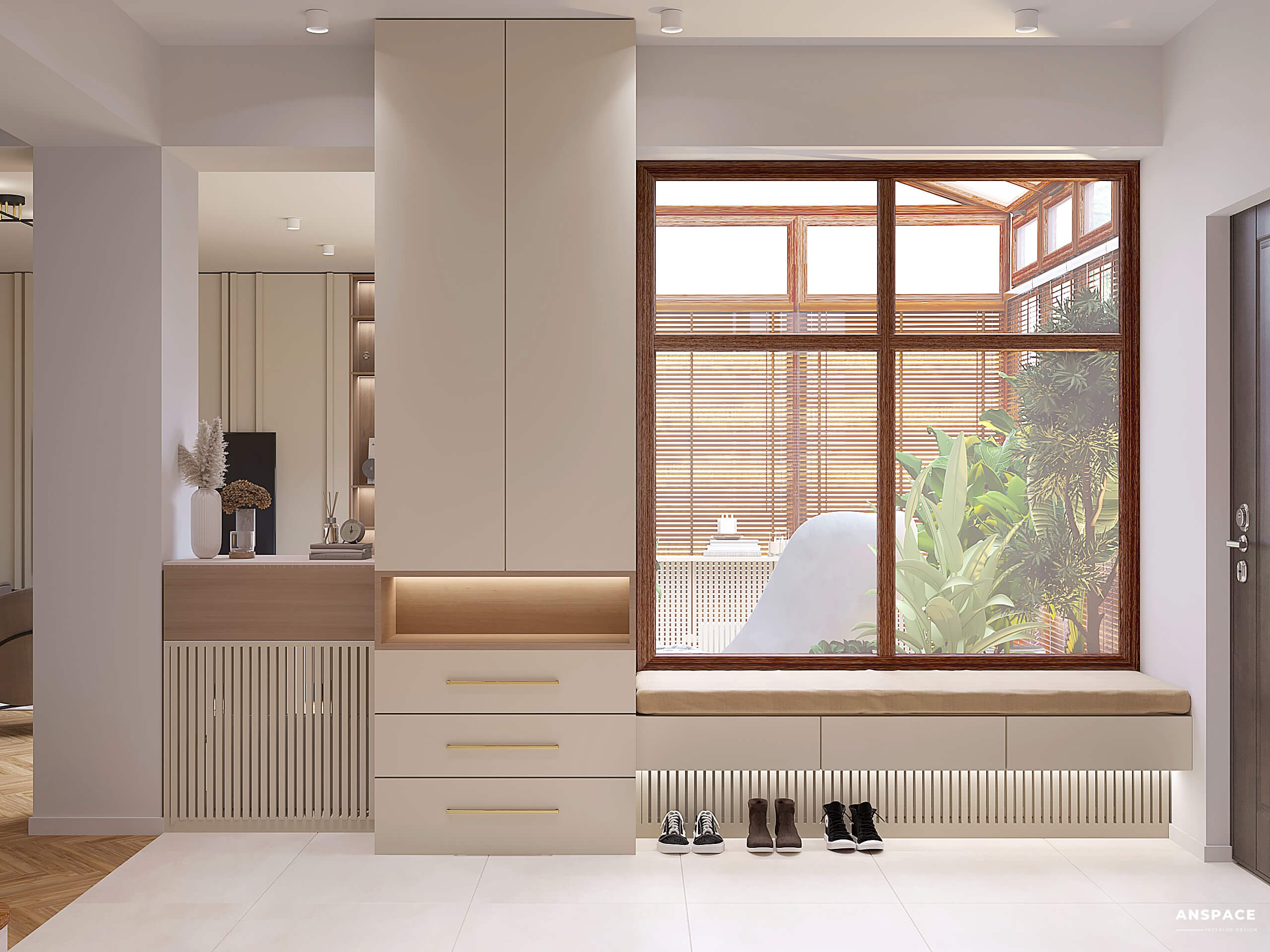 Elegancki korytarz z garderobą to idealne połączenie estetyki i funkcjonalności. Dzięki minimalistycznym rozwiązaniom oraz nowoczesnym materiałom, wnętrze pozostaje przestronne i uporządkowane.